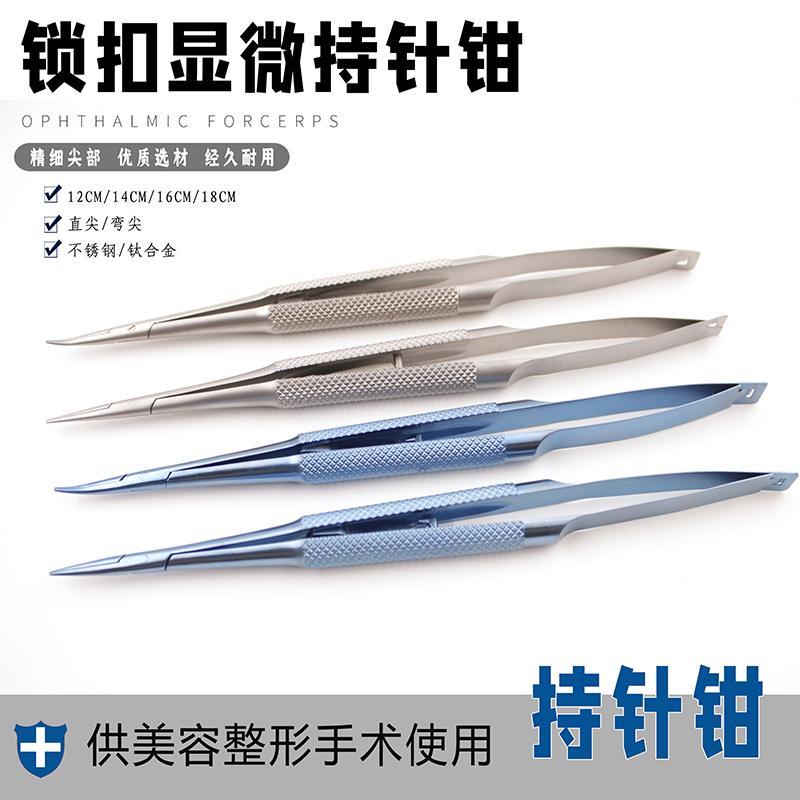 眼科手术显微器械锁扣式持针钳夹针器直头弯头持针工具锁扣持针器