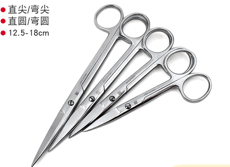 不锈钢手术直尖弯圆剪刀12.5/14/16/18cm医院手术外科剪