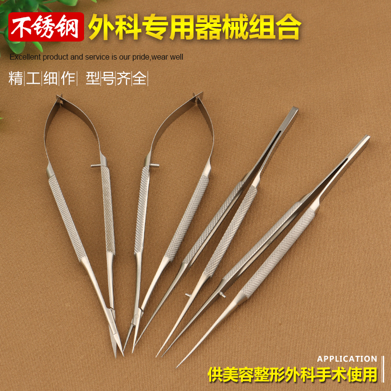 不锈钢圆柄显微剪刀镊子持针钳外科手术工具器械套包练习动物实验