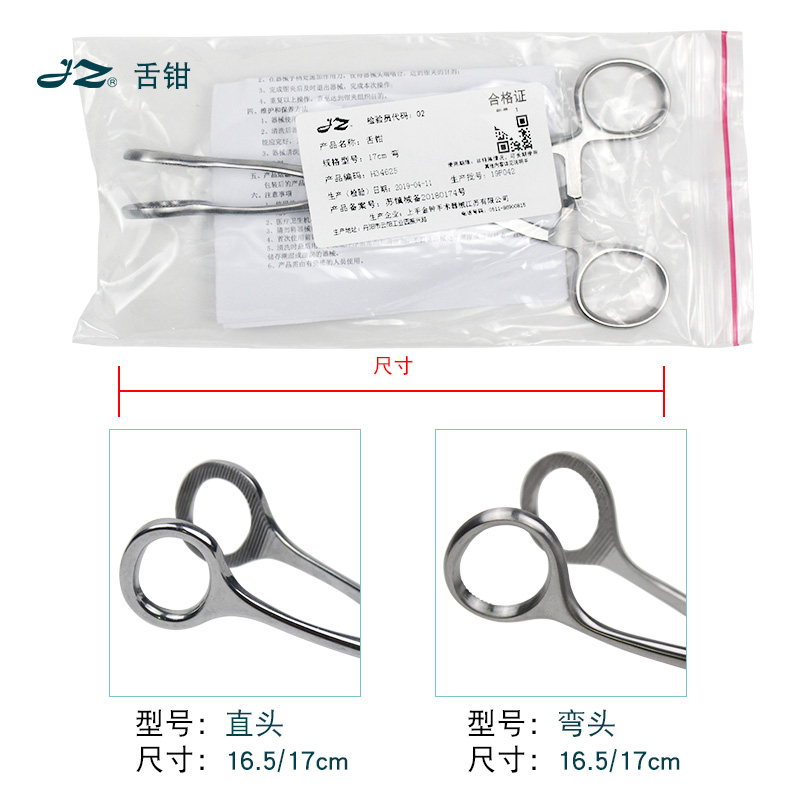 金钟舌钳牙科口腔器械17cm直头不锈钢舌头钳子弯头带横齿舌夹