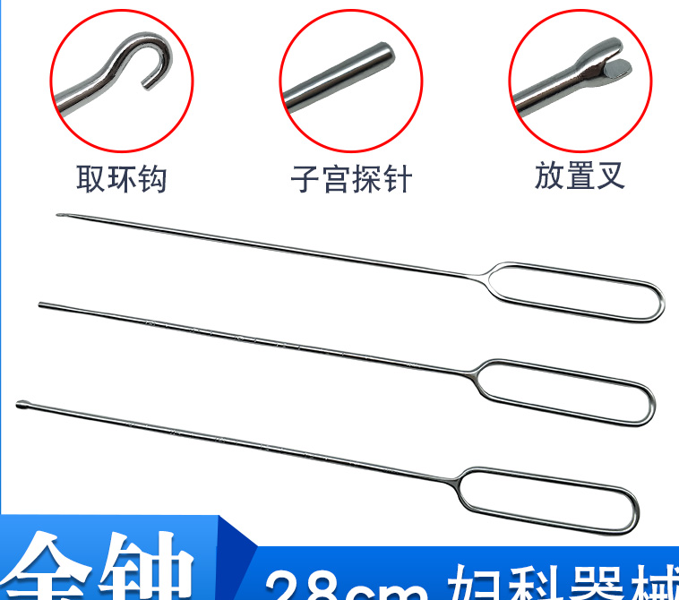 金钟不锈钢子宫探针妇科人流取环钩宫内节育放置叉上环叉28cm